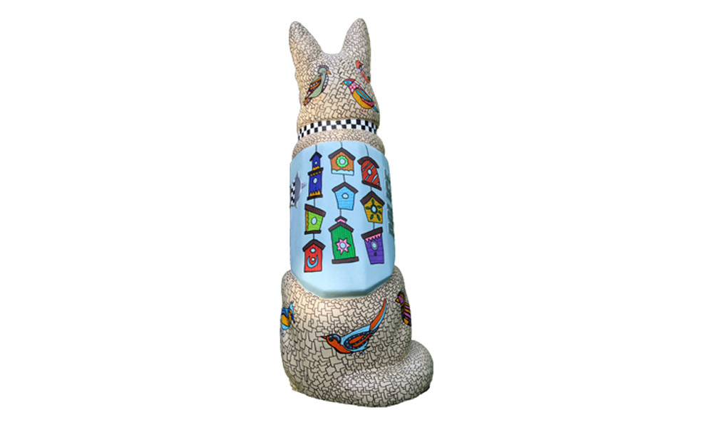 Media: Acrylic and Ink on Resin Size: 4 ft x 2 ft X 4ft (1.2 m x 0.6 m X 1.2 m) Bird Dog was done for the Chicago K9s Public Art Program to benefit the Chicago Police Memorial Fund and PAWS Chicago. The Bird Dog is on exhibit at the Hyatt Regency Chicago.