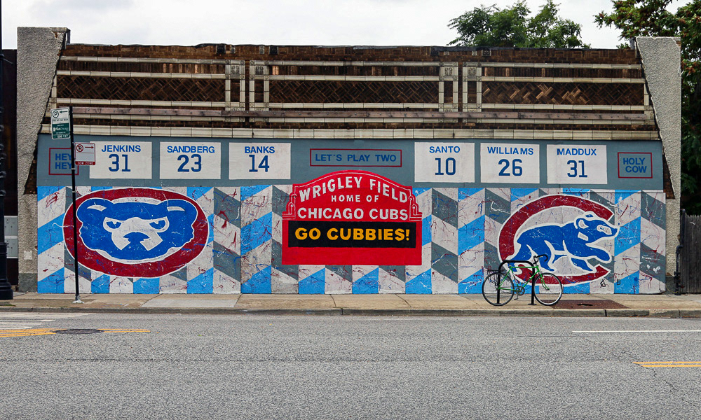 Media: Acrylic on Wood Panel Size: 12 ft high X 50 ft wide (3.6 m x 15.2 m) The Chicago Cubs Mural is located in the Jefferson Park Neighborhood in Chicago, IL