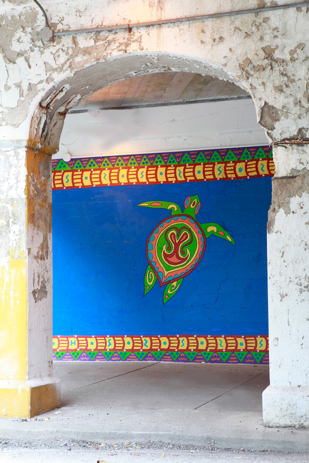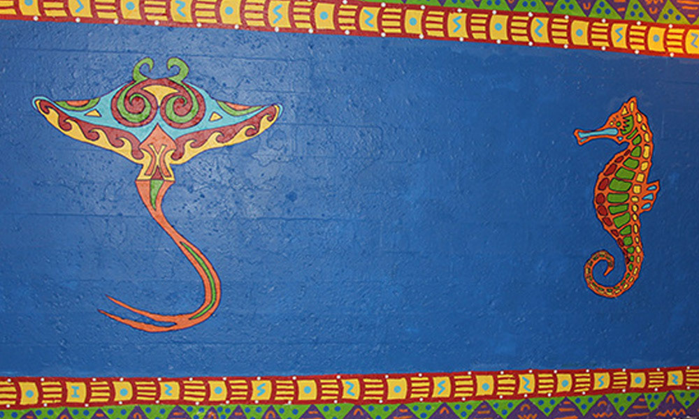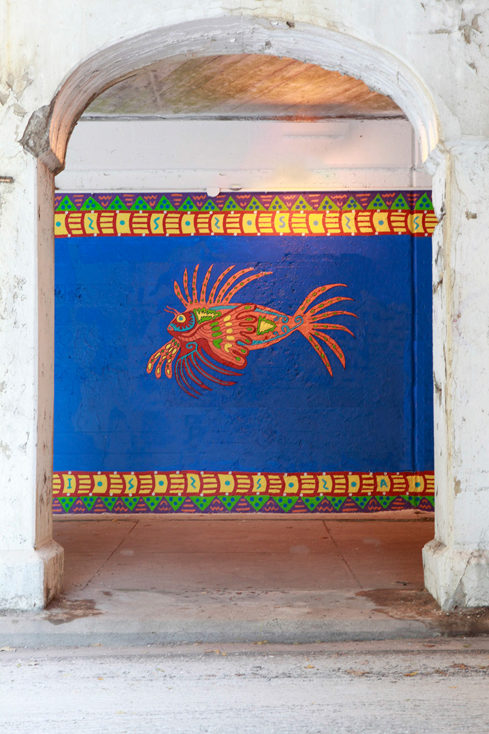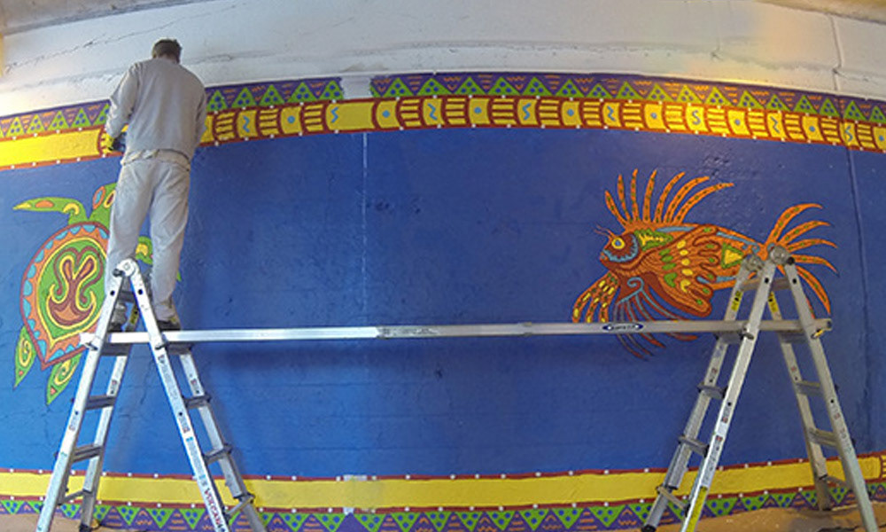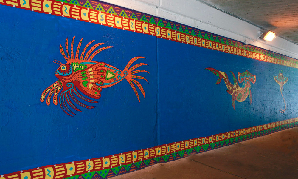 Media: Acrylic on Mason Size: 12 ft x 68 ft (3.6 m x 20.5 m) The Coloribbean Mural is located in Chicago in the community of Rogers Park at the Red Line underpass on Chase Avenue.