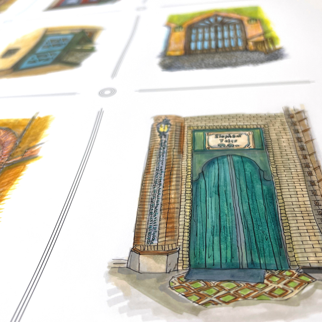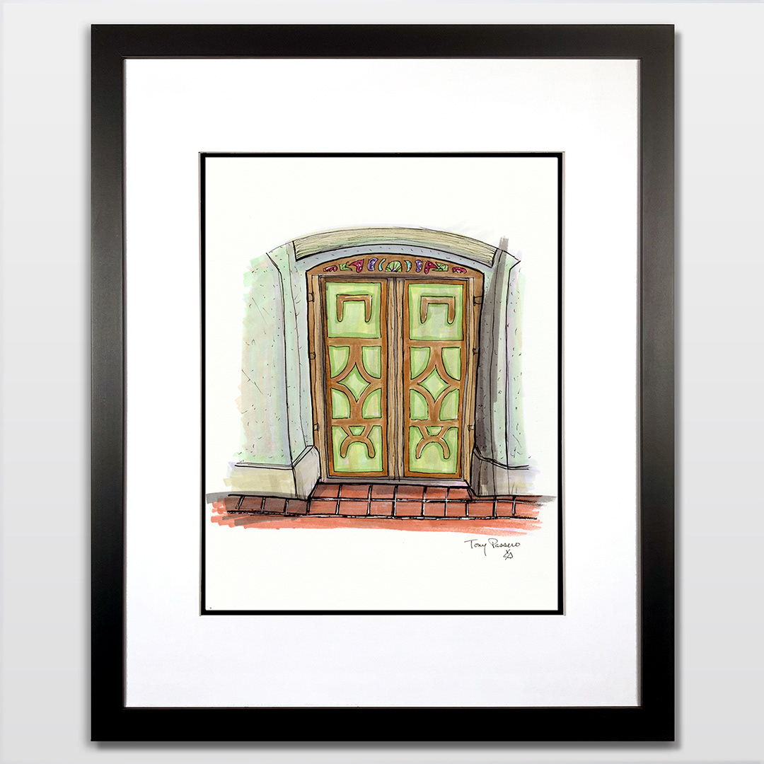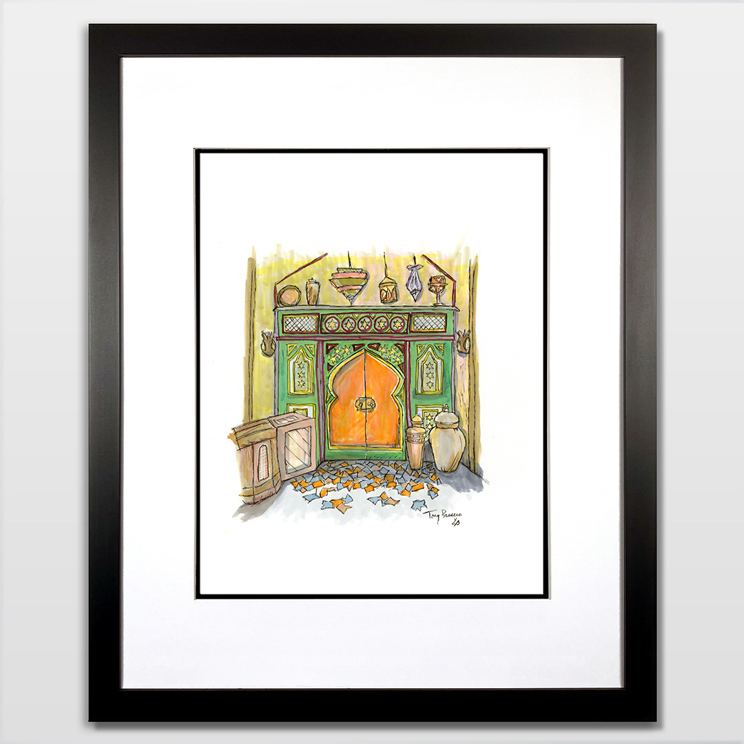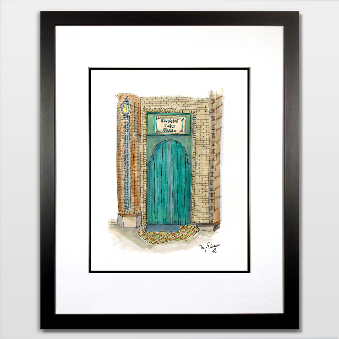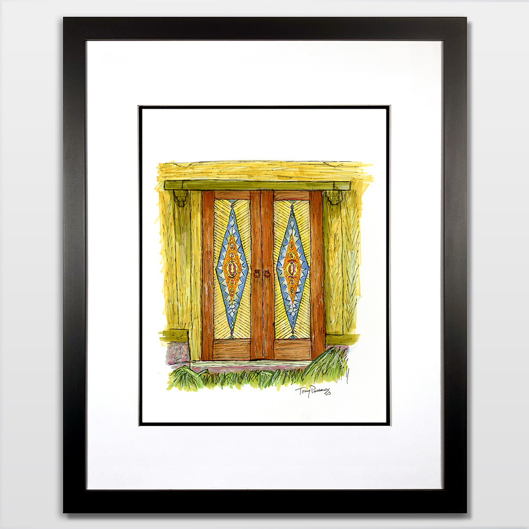 Series: Dream Doorways Magic Kingdom Adventureland Media: Mixed Media on Paper Size: 14h x 11w inches Matted Size: 20h x 16w inches