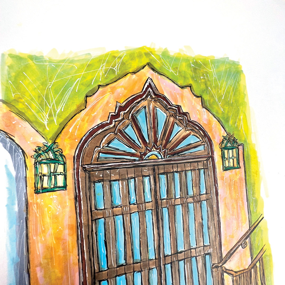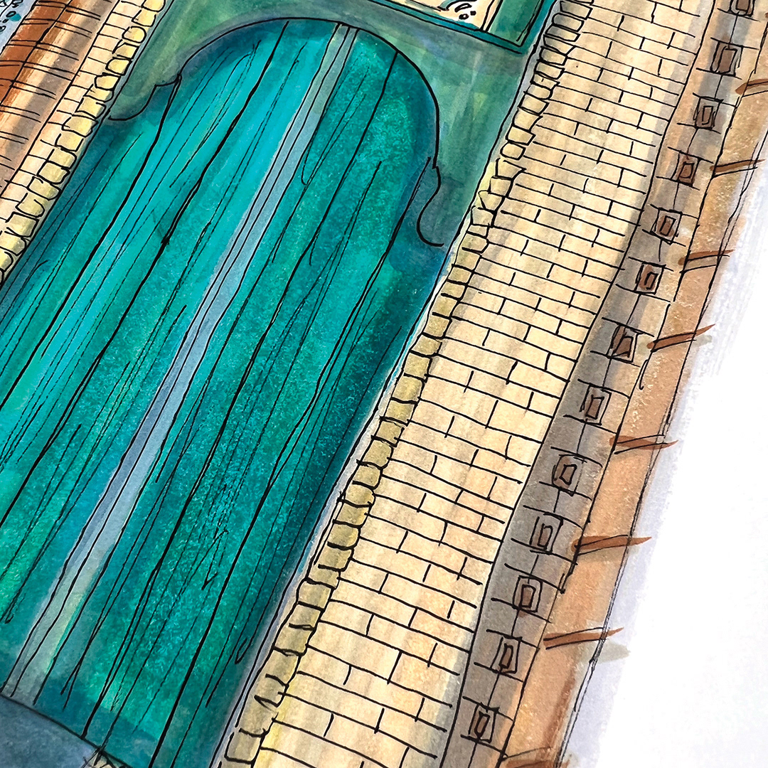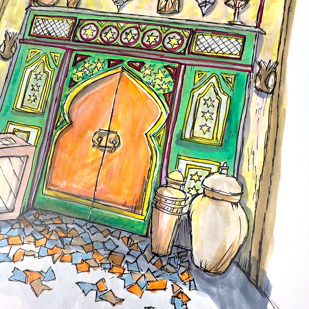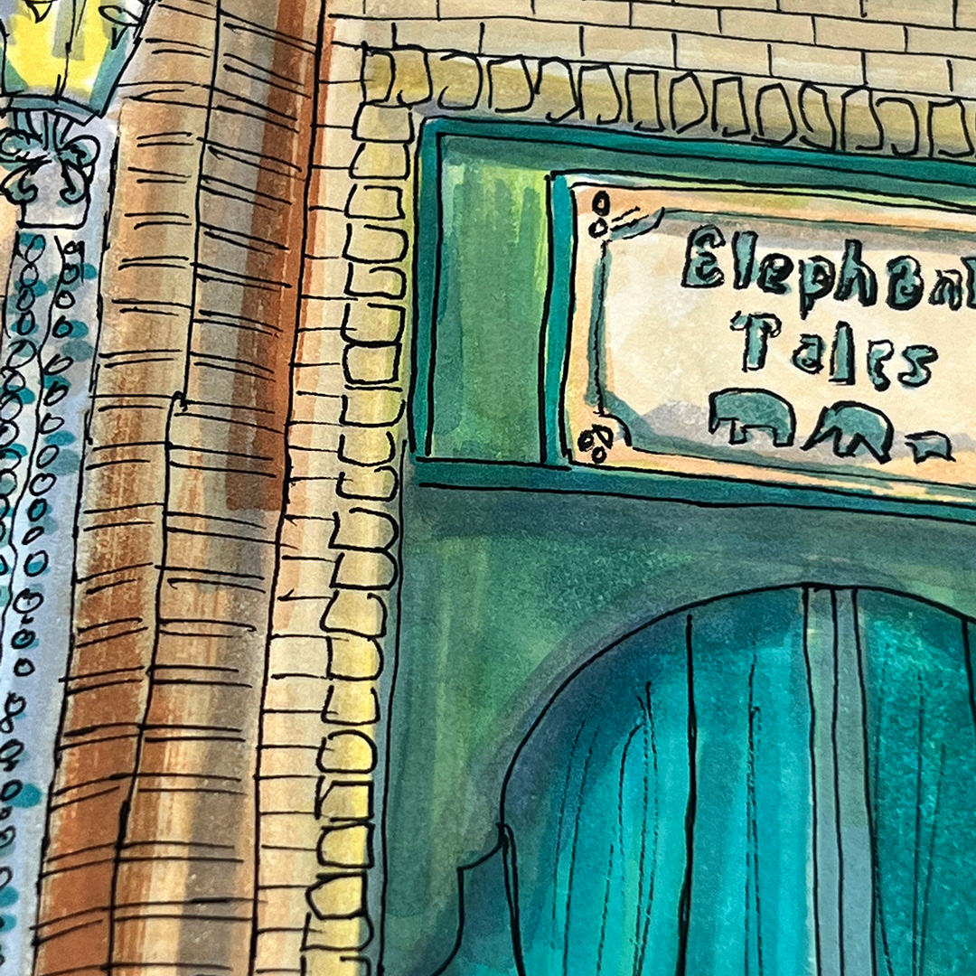 Series: Dream Doorways Magic Kingdom Adventureland Media: Mixed Media on Paper Size: 14h x 11w inches Matted Size: 20h x 16w inches