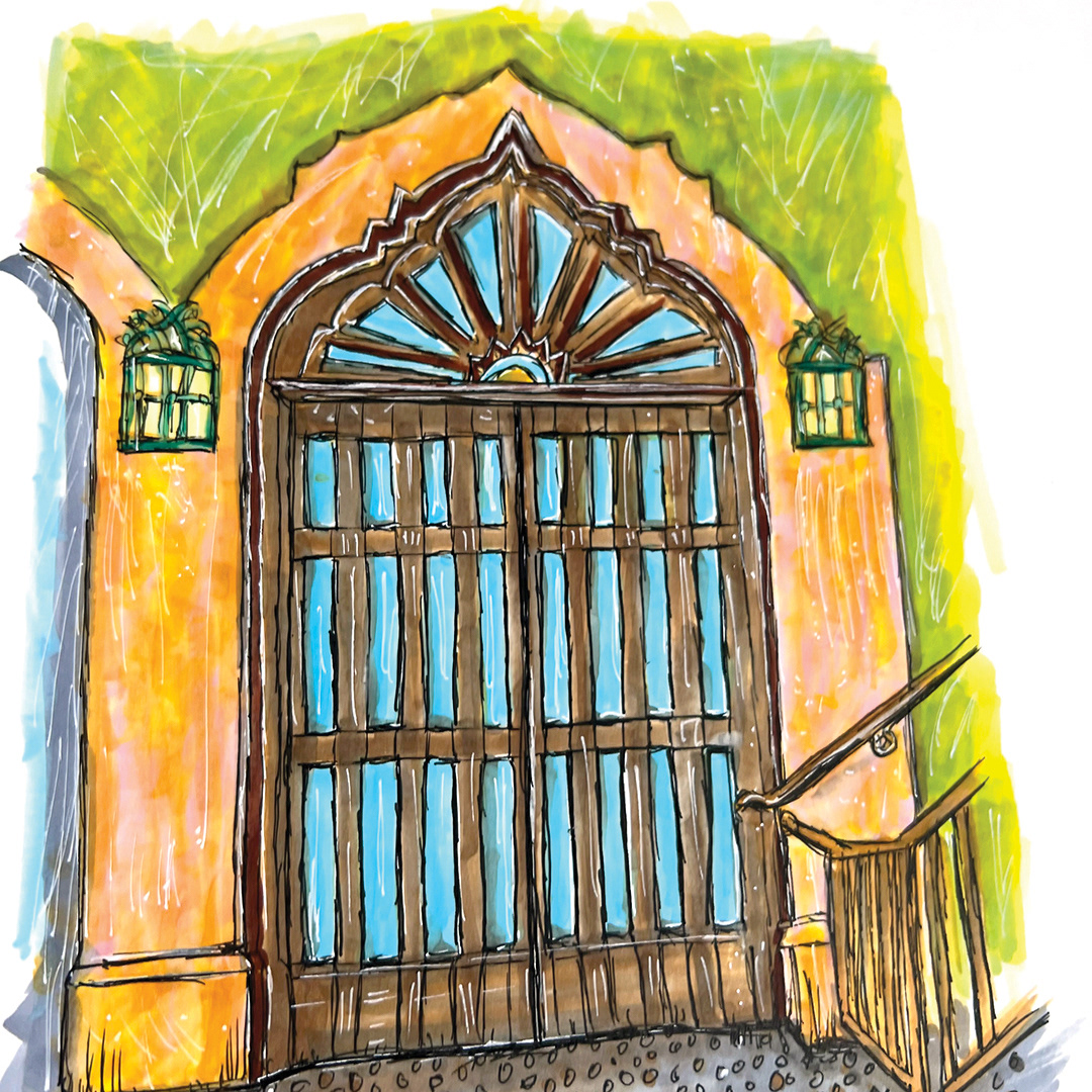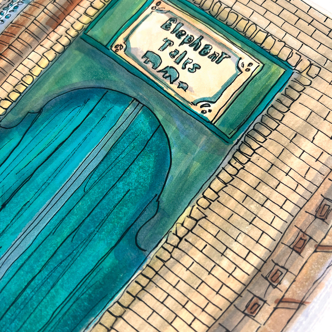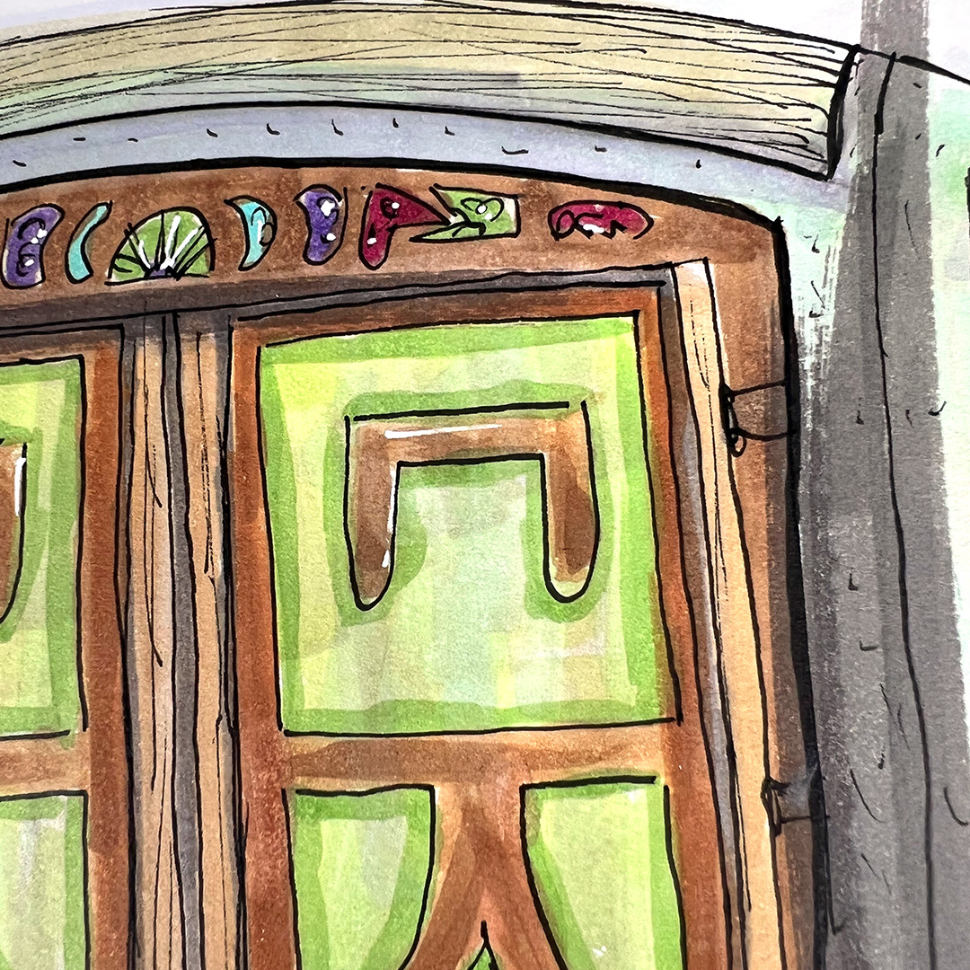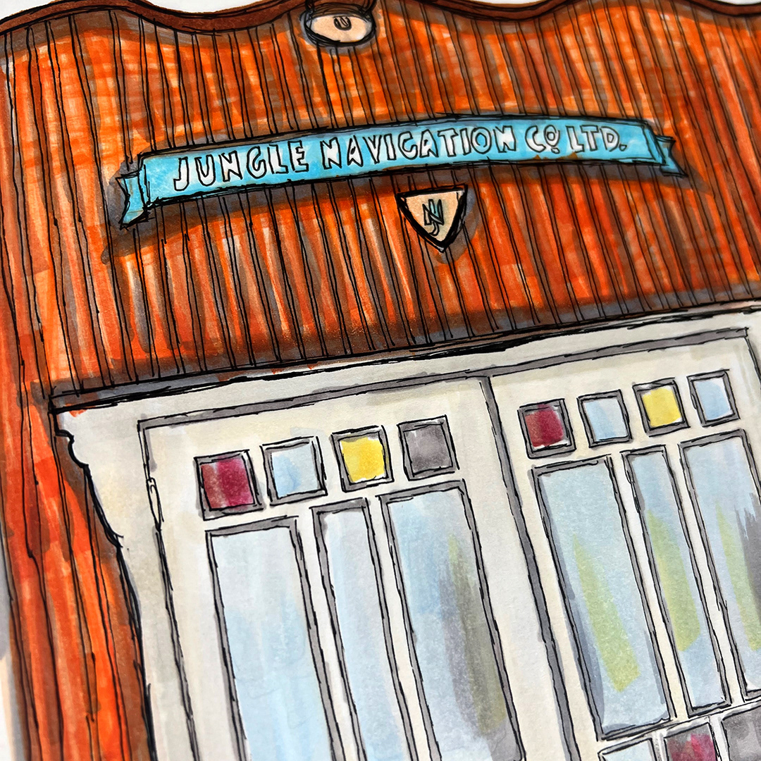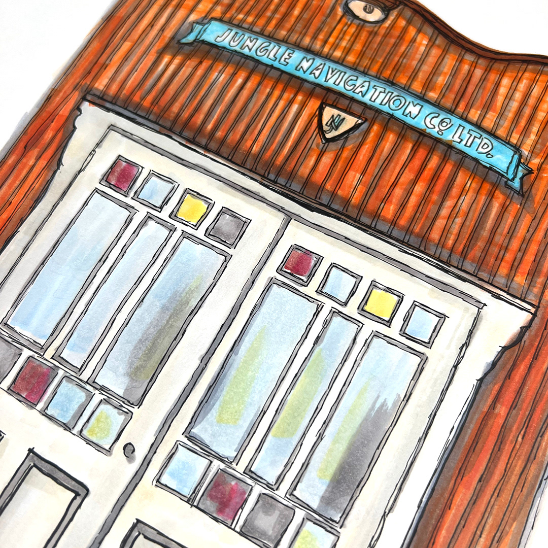 Series: Dream Doorways Magic Kingdom Adventureland Media: Mixed Media on Paper Size: 14h x 11w inches Matted Size: 20h x 16w inches