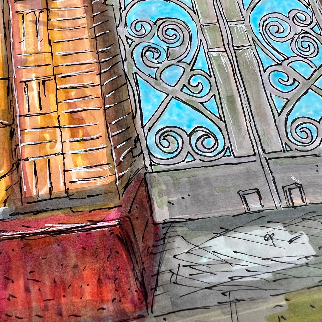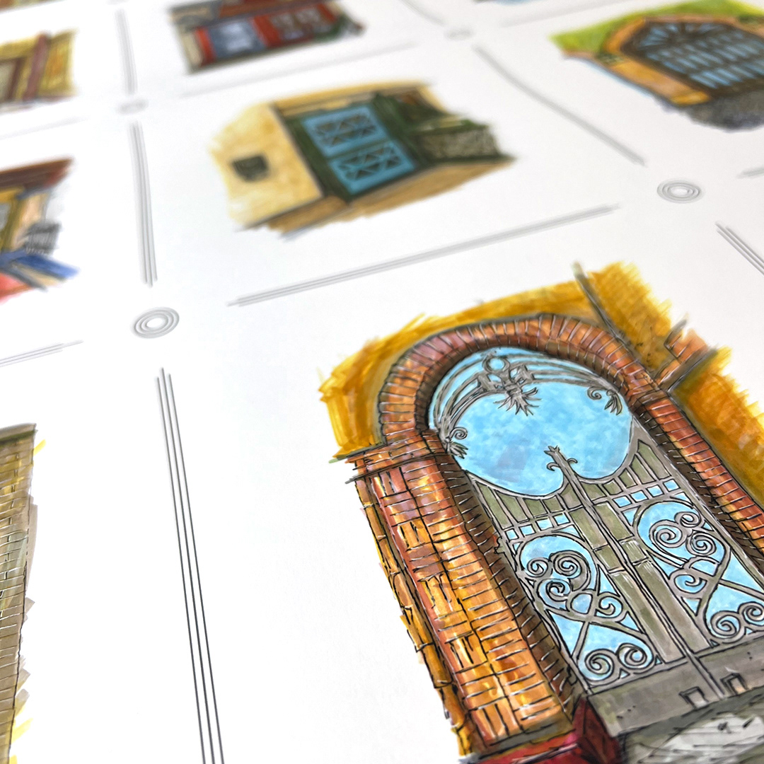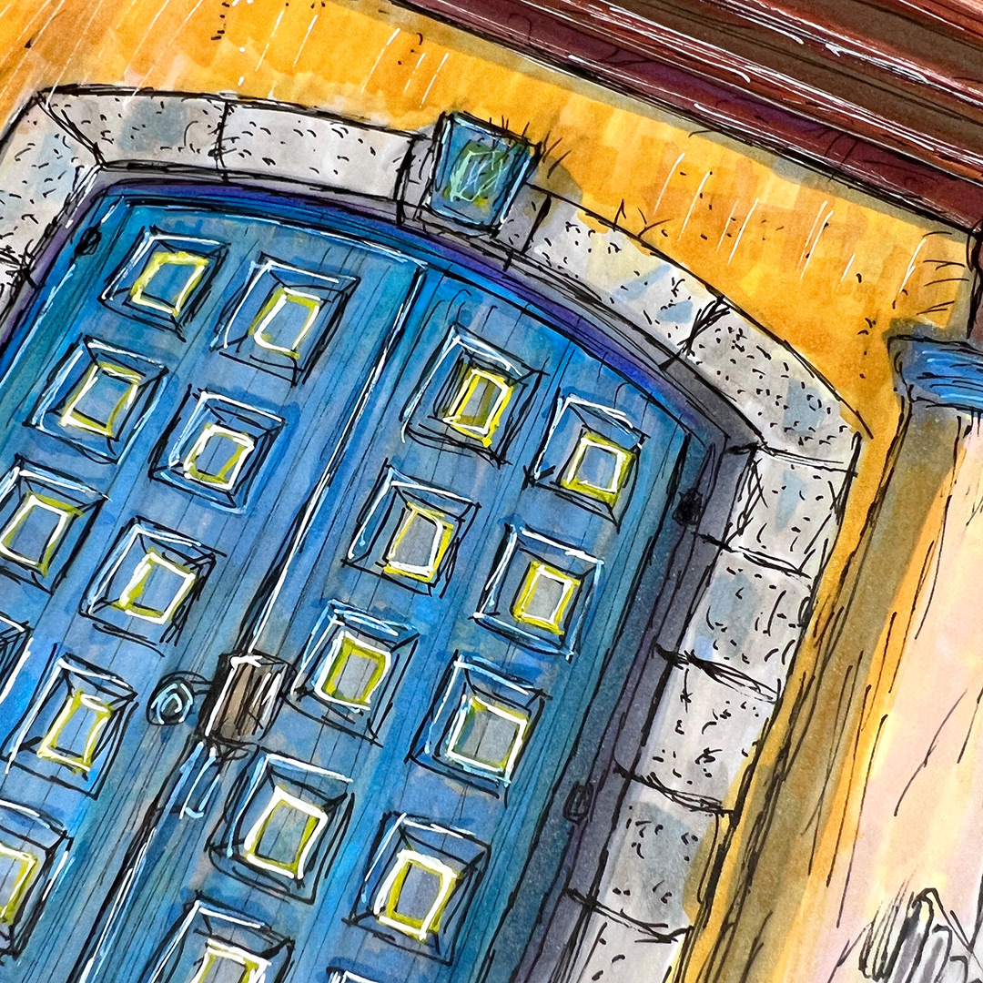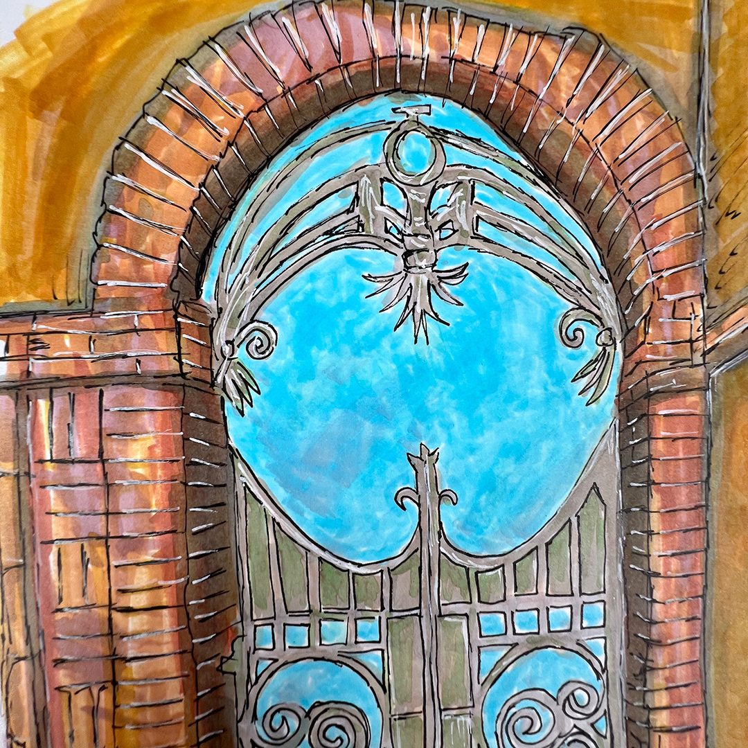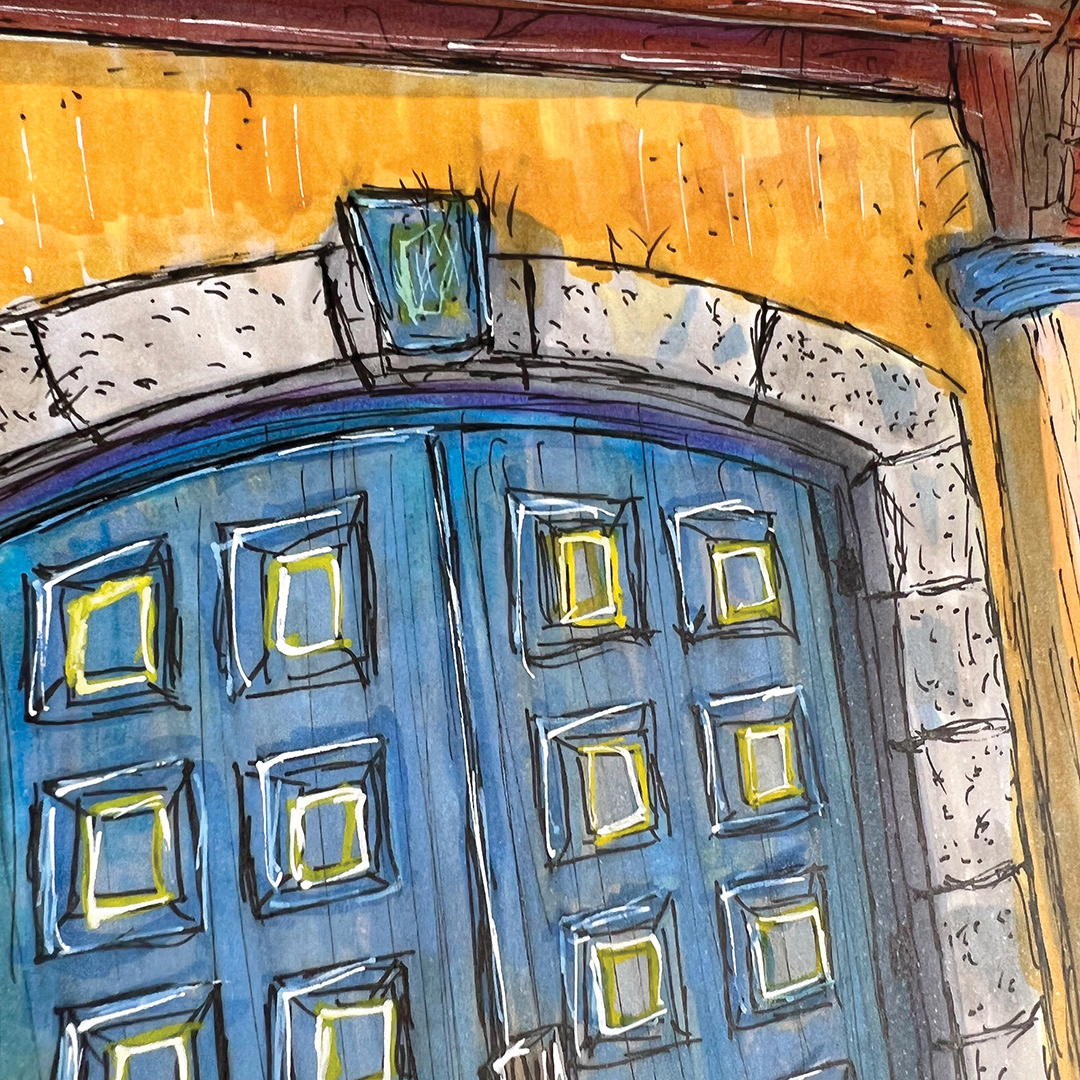 Series: Dream Doorways Magic Kingdom Adventureland Media: Mixed Media on Paper Size: 14h x 11w inches Matted Size: 20h x 16w inches