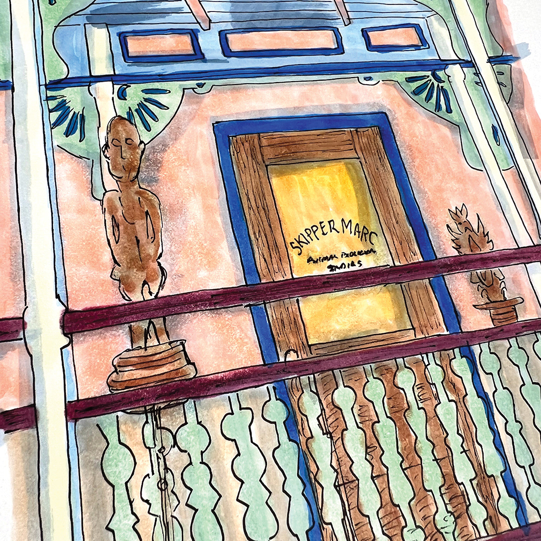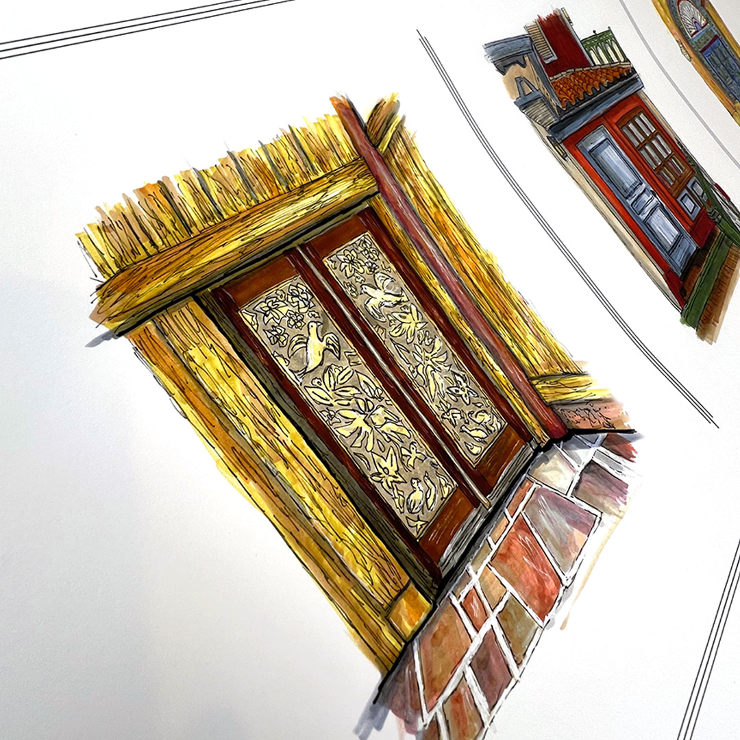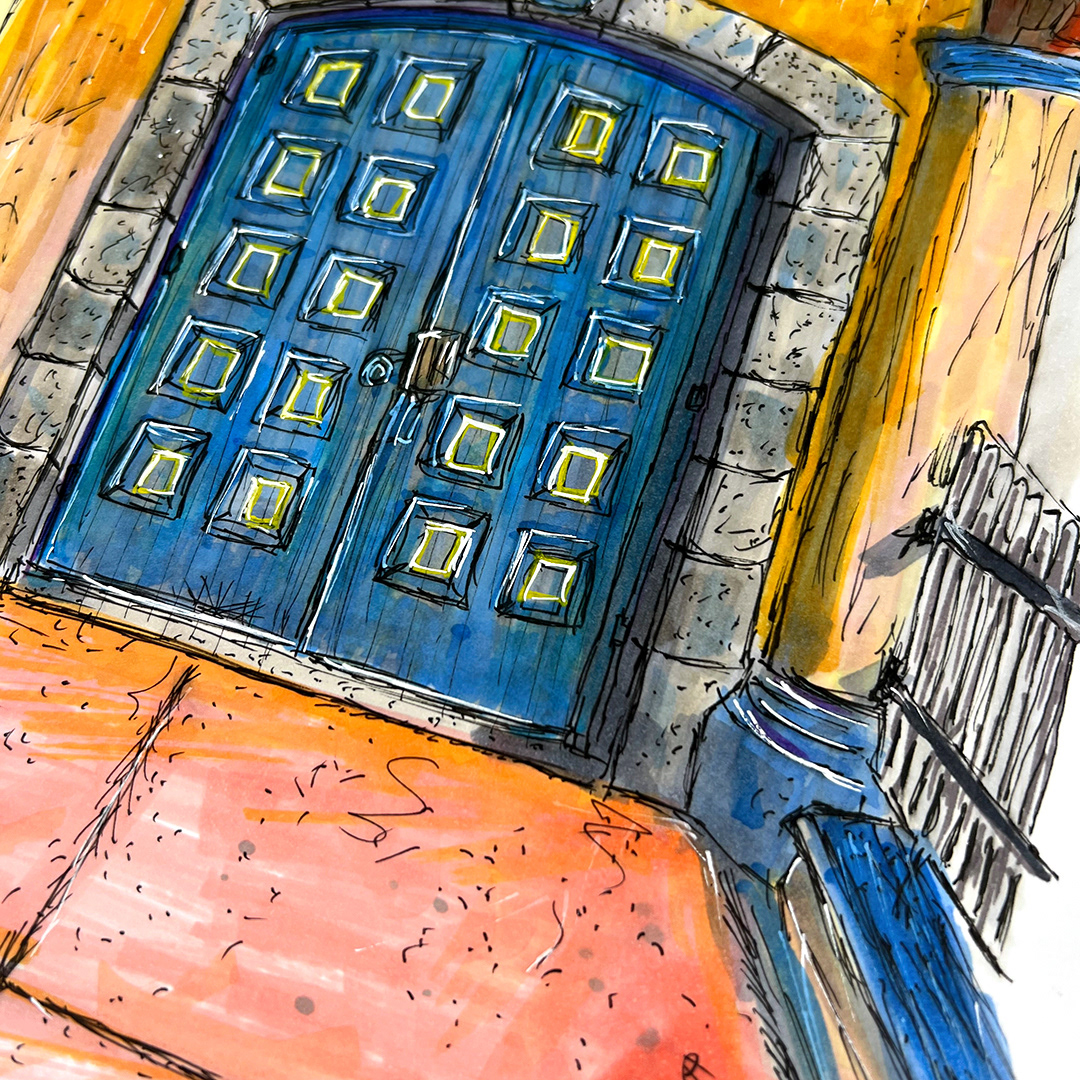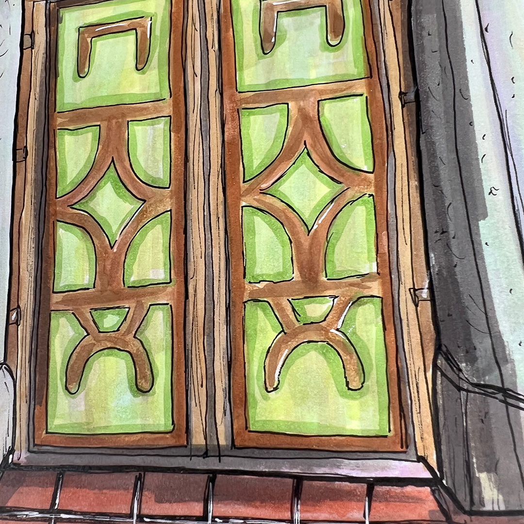Series: Dream Doorways Magic Kingdom Adventureland Media: Mixed Media on Paper Size: 14h x 11w inches Matted Size: 20h x 16w inches