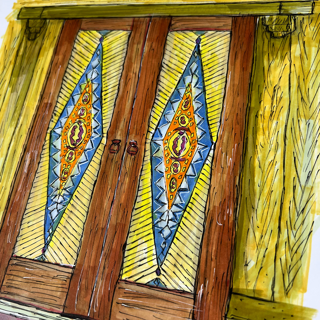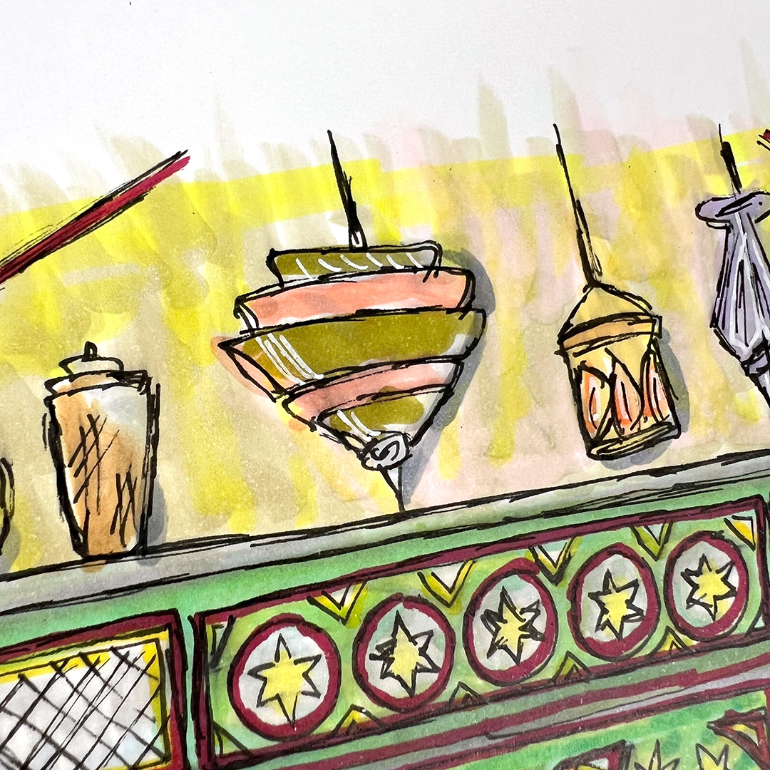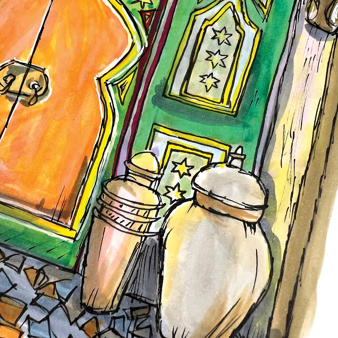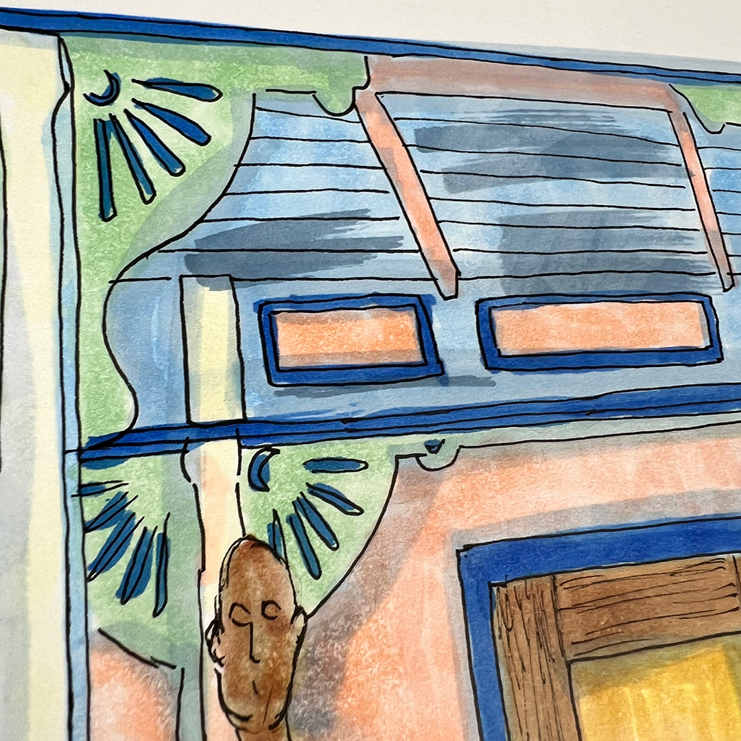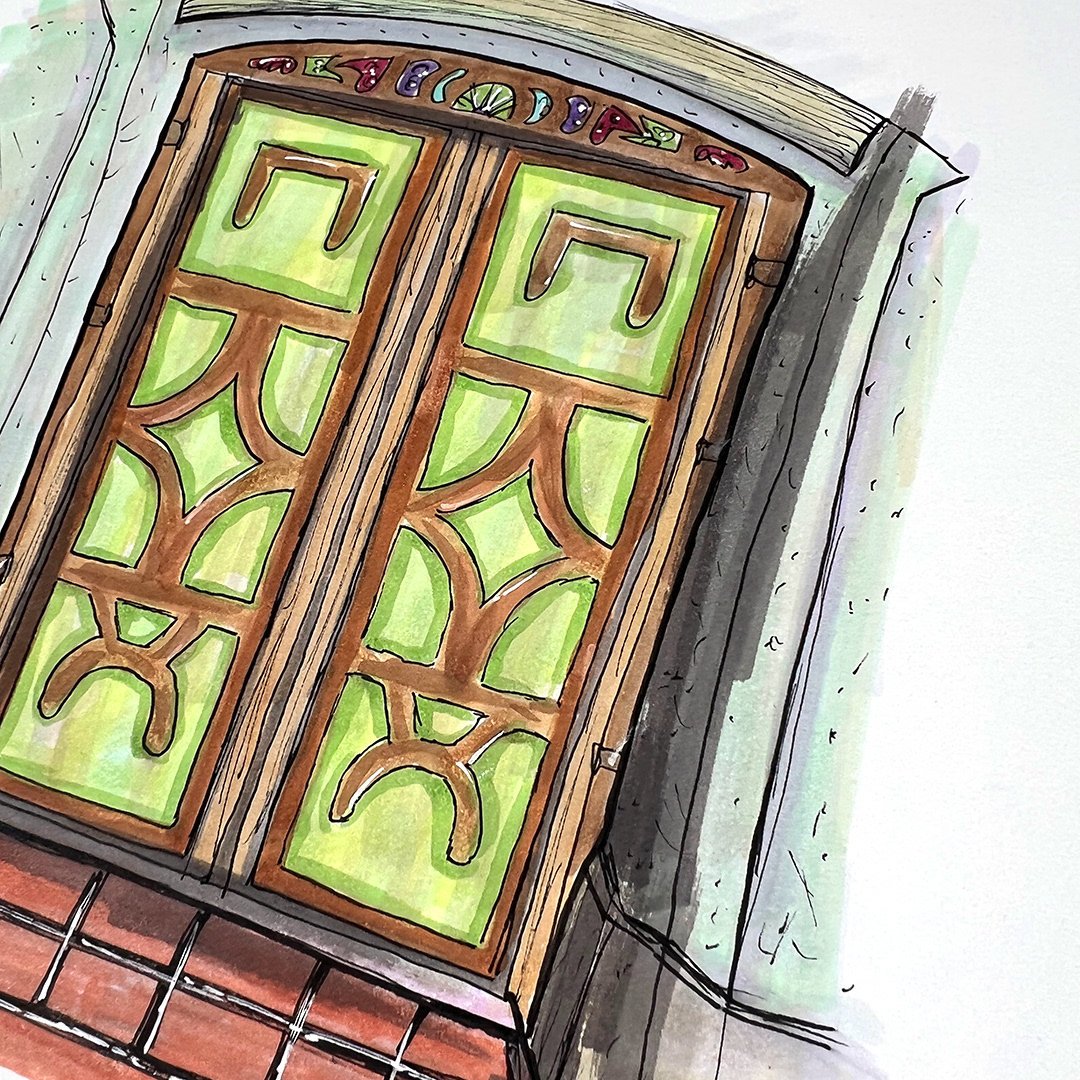 Series: Dream Doorways Magic Kingdom Adventureland Media: Mixed Media on Paper Size: 14h x 11w inches Matted Size: 20h x 16w inches