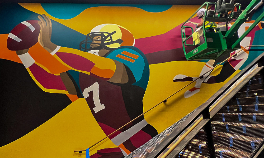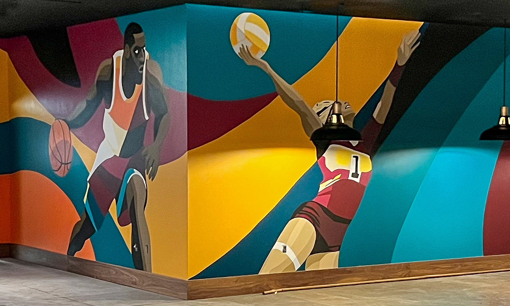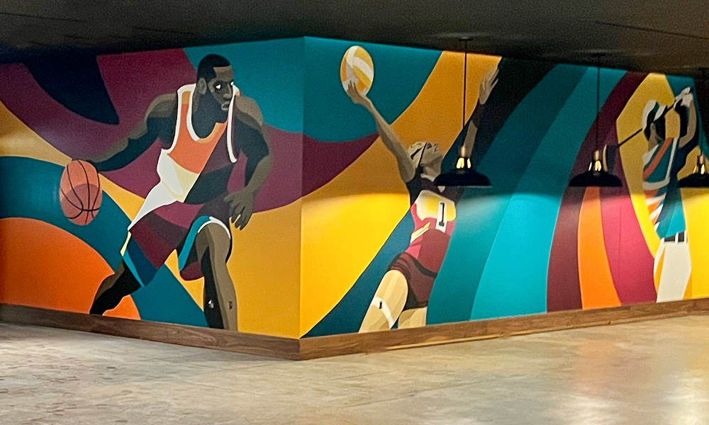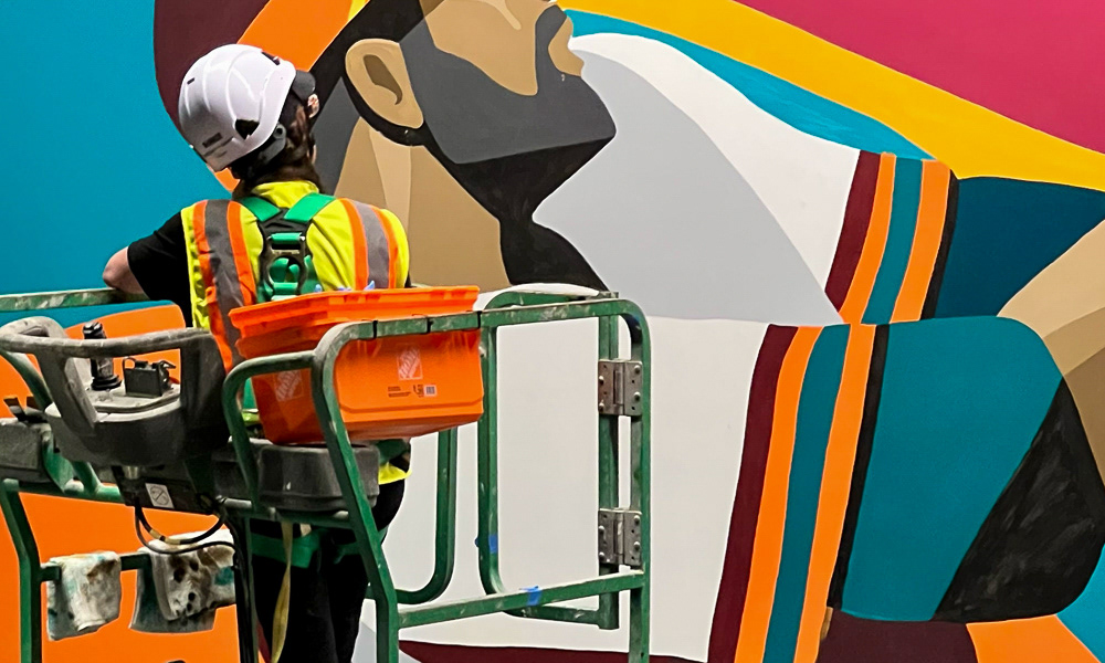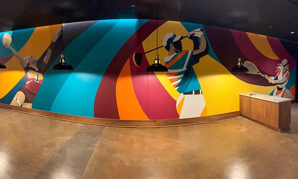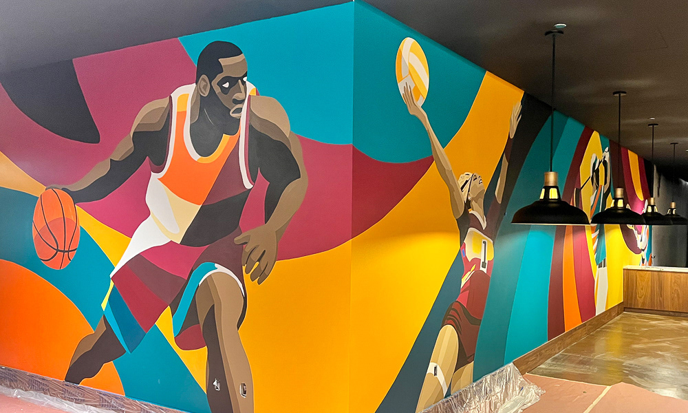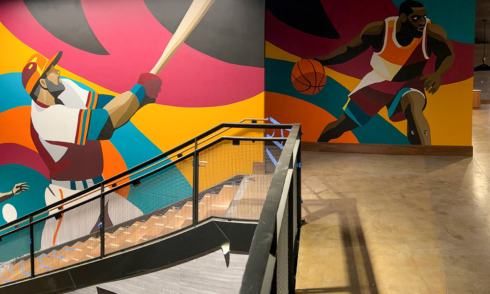 Media: Acrylic on Mason Wall Size: 18 ft x 720 ft (5.4 m x 219.5 m) Created for the Gaylord Pacific Growlers Sportsbar