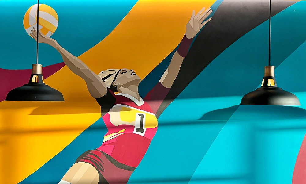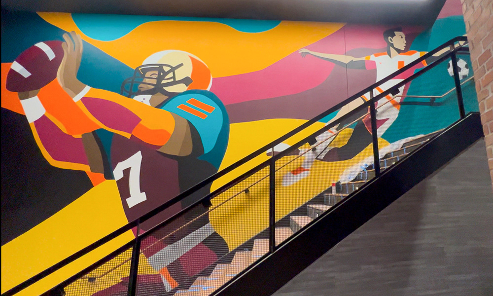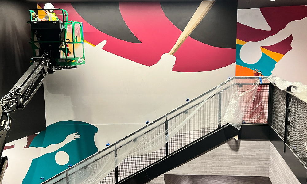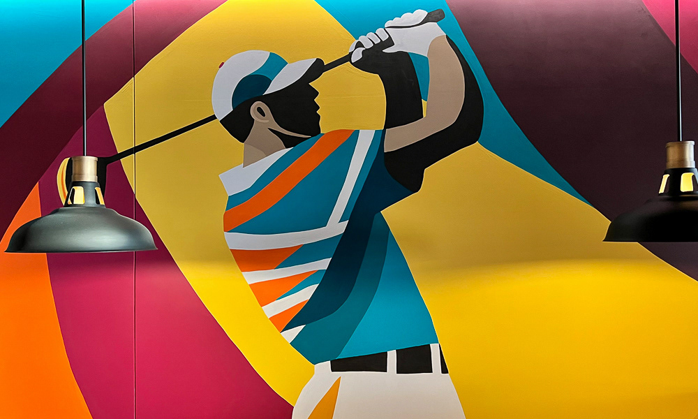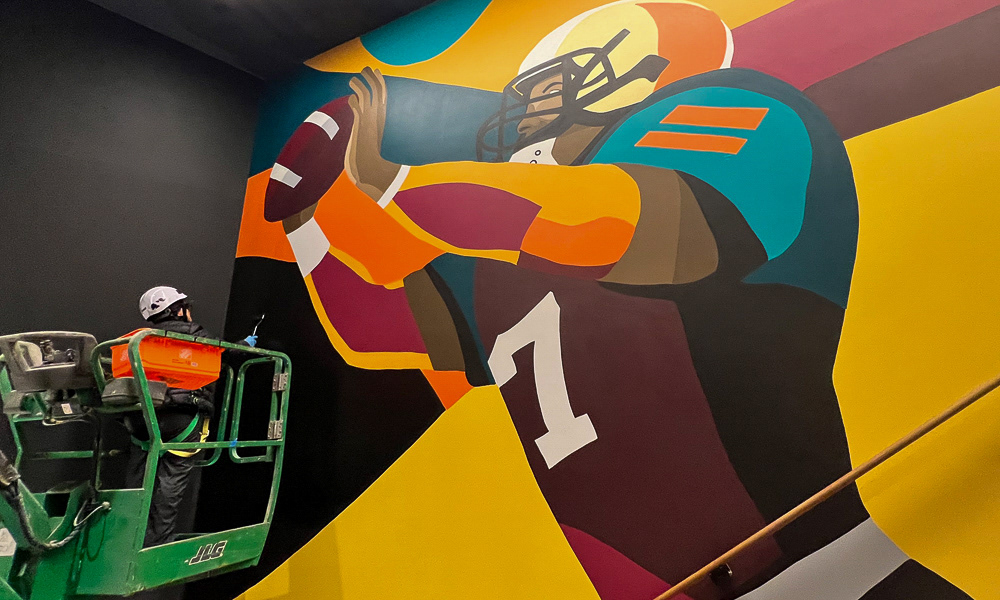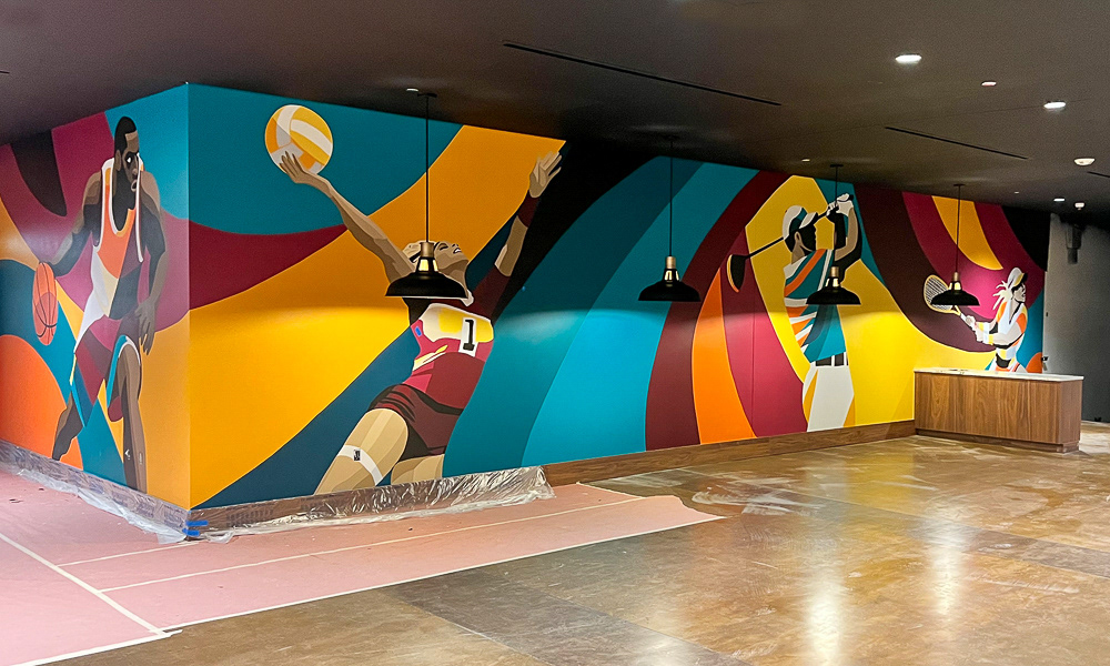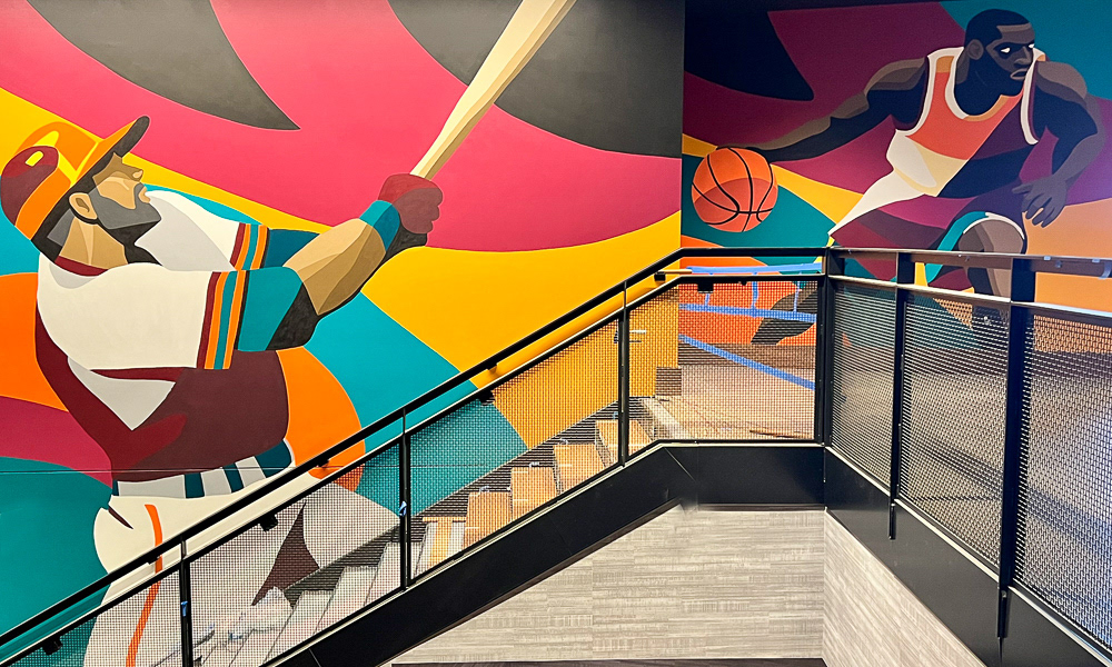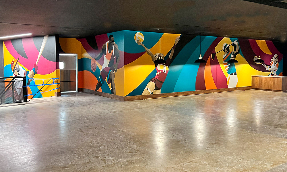 Media: Acrylic on Mason Wall Size: 18 ft x 720 ft (5.4 m x 219.5 m) Created for the Gaylord Pacific Growlers Sportsbar