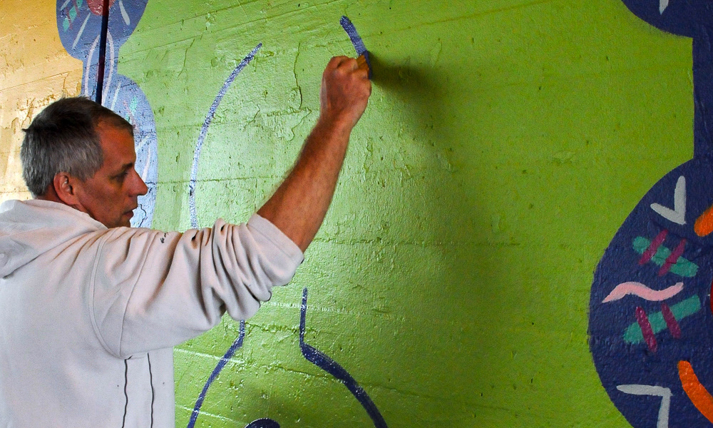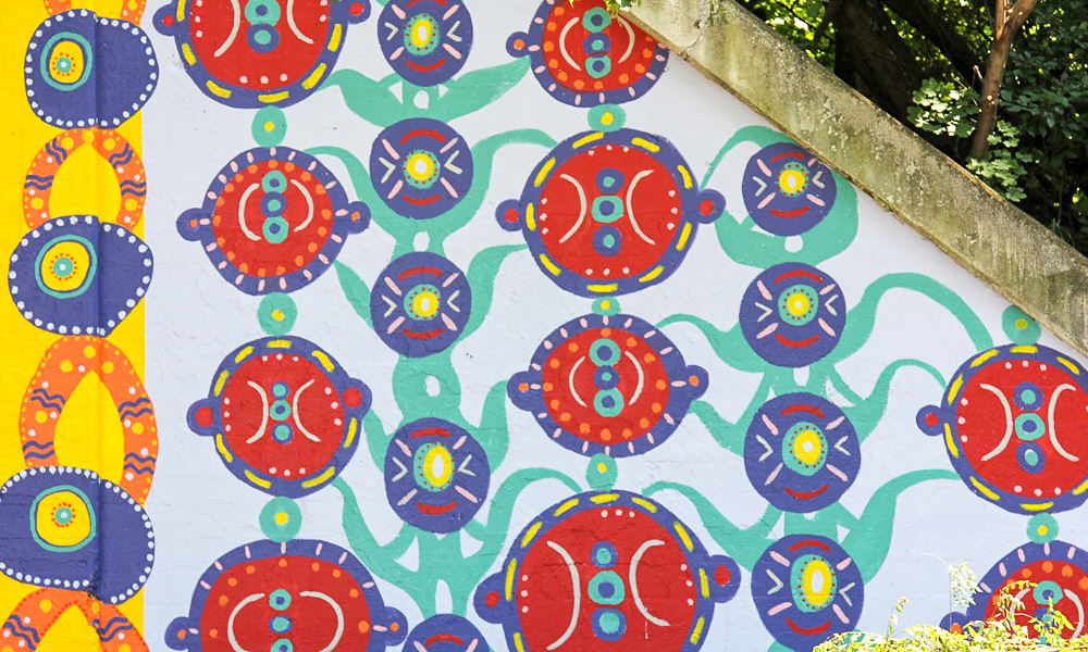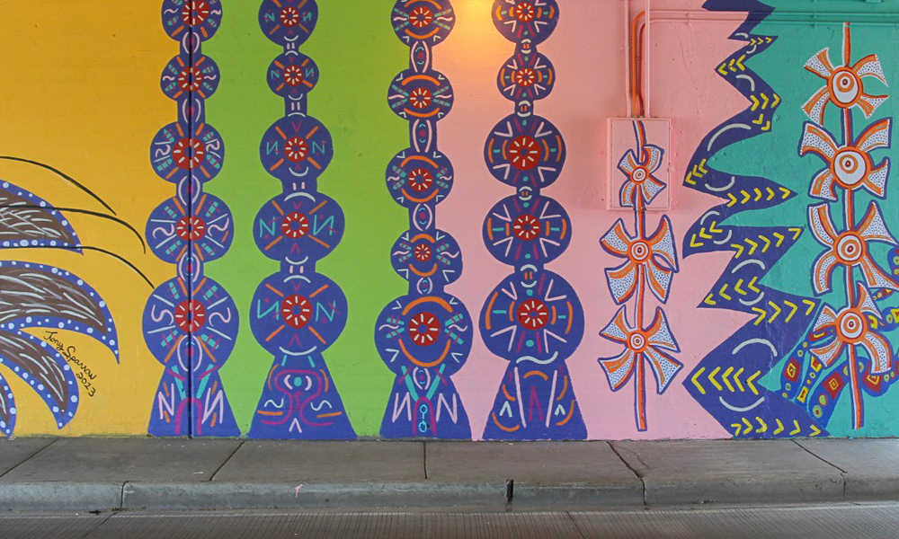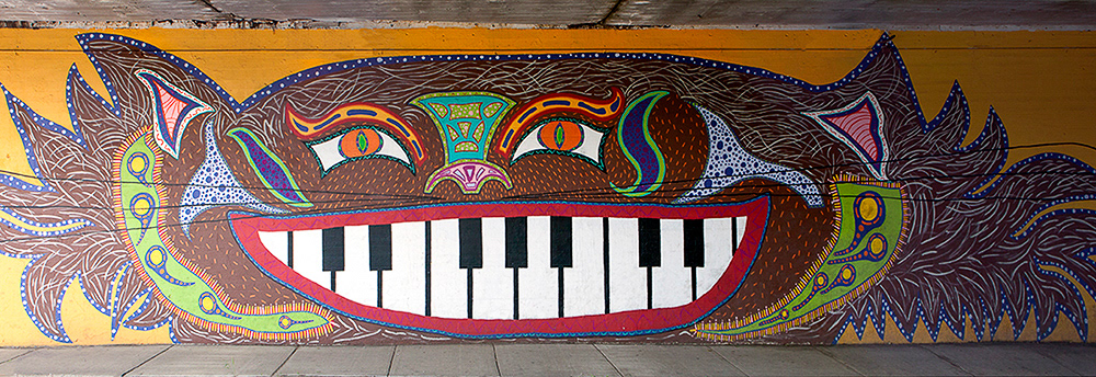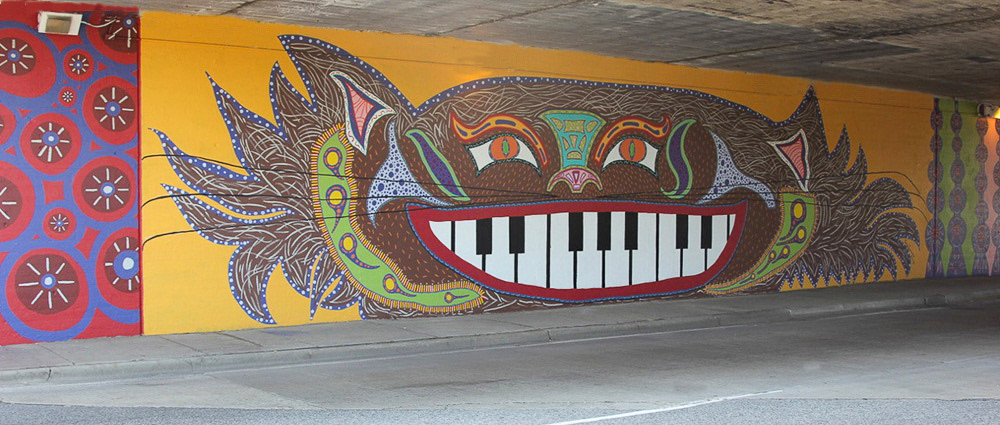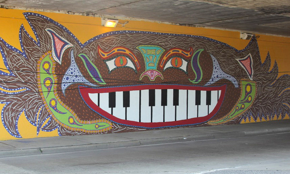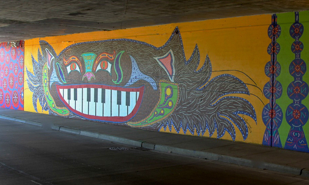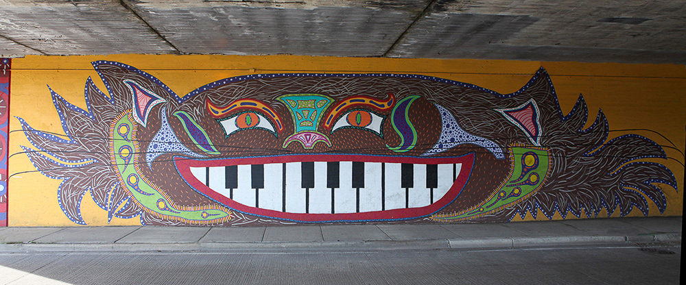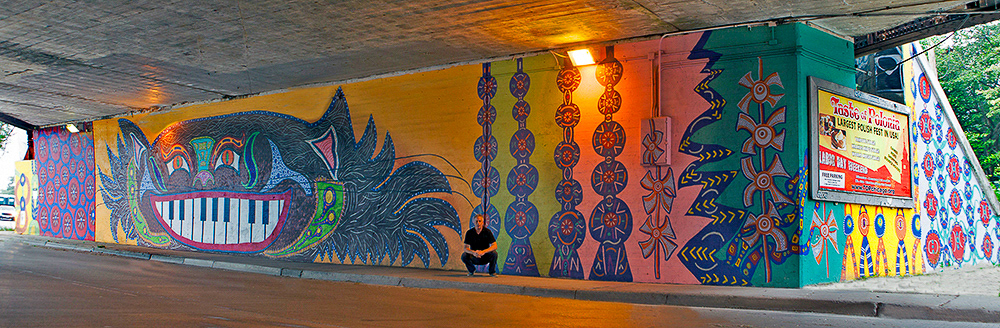 Media: Acrylic and Spray Paint on Mason Wall Size: 14 ft x 180 ft (4.3 m x 54.9 m) The Hep Cat mural is on Cicero Avenue at the Union Pacific underpass just past Lawrence at the cross street of Gunnison.