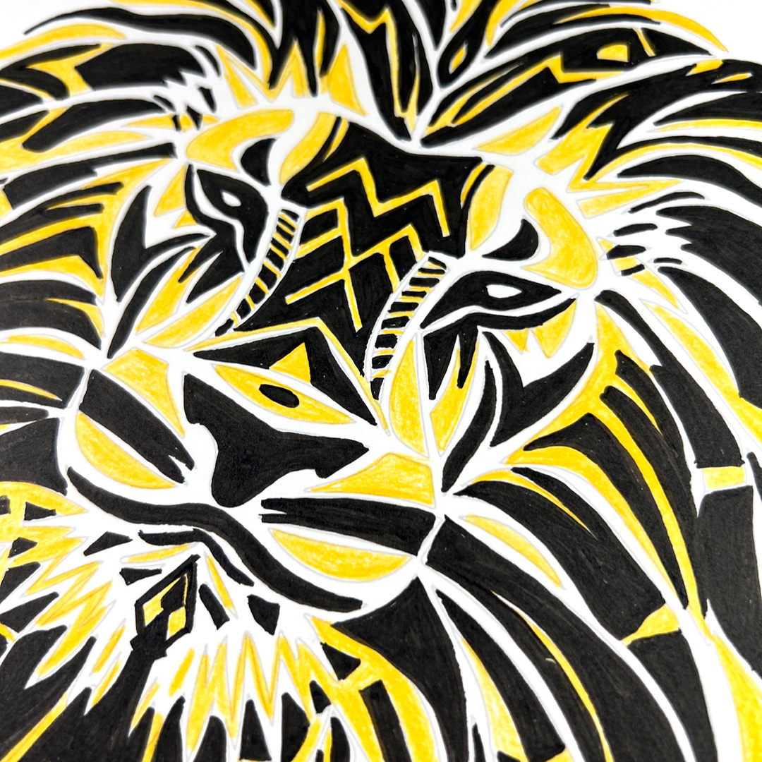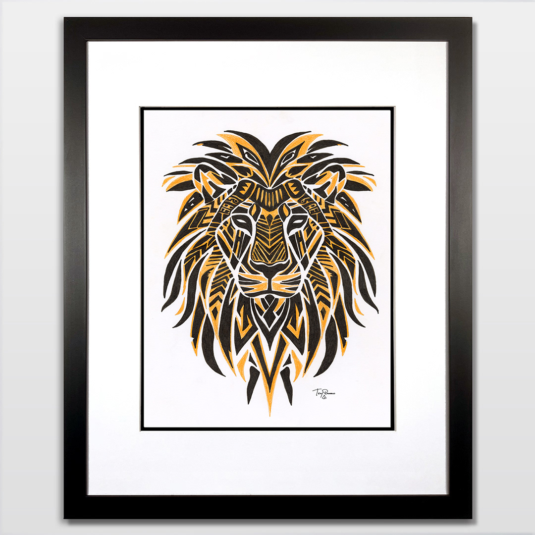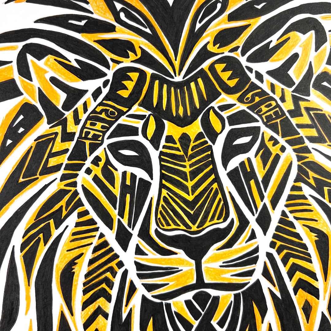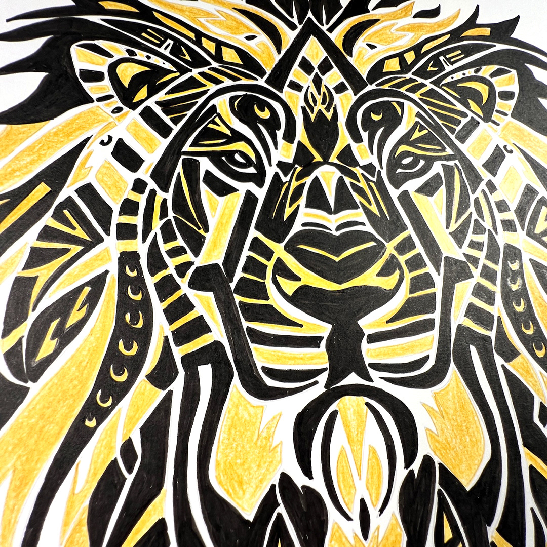 Series: Spirit Animals Lions Media: Mixed Media on Paper Size: 14h x 11w inches Matted Size: 20h x 16w inches