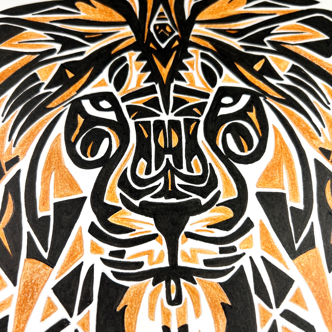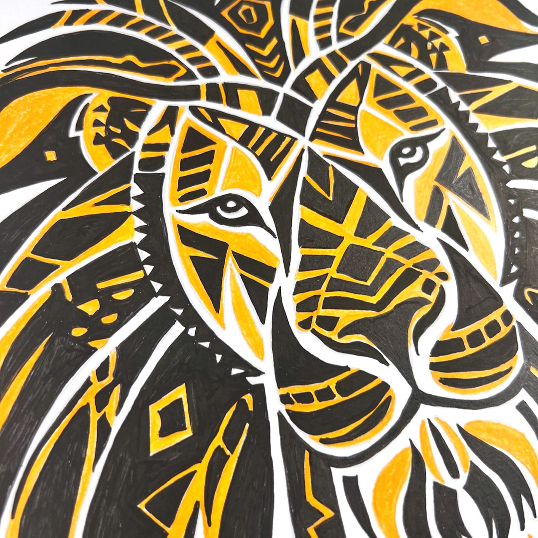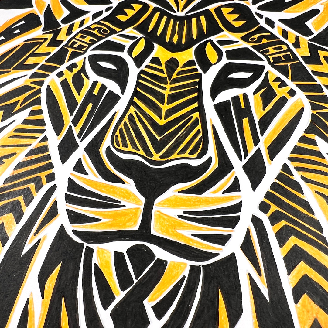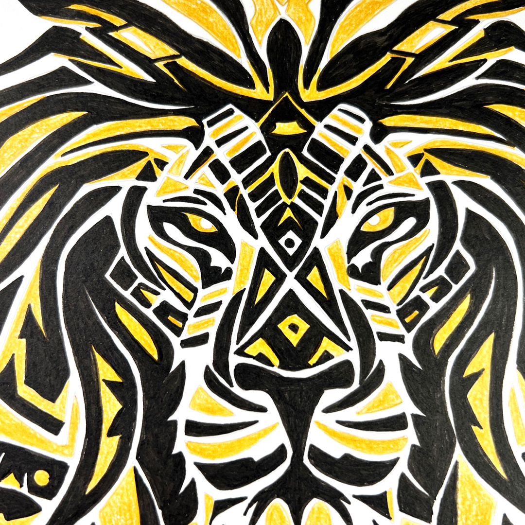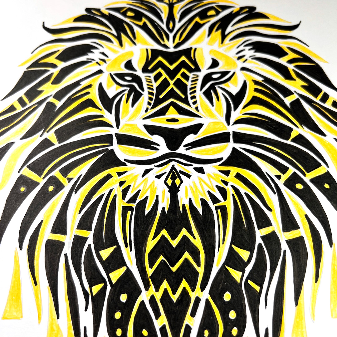 Series: Spirit Animals Lions Media: Mixed Media on Paper Size: 14h x 11w inches Matted Size: 20h x 16w inches