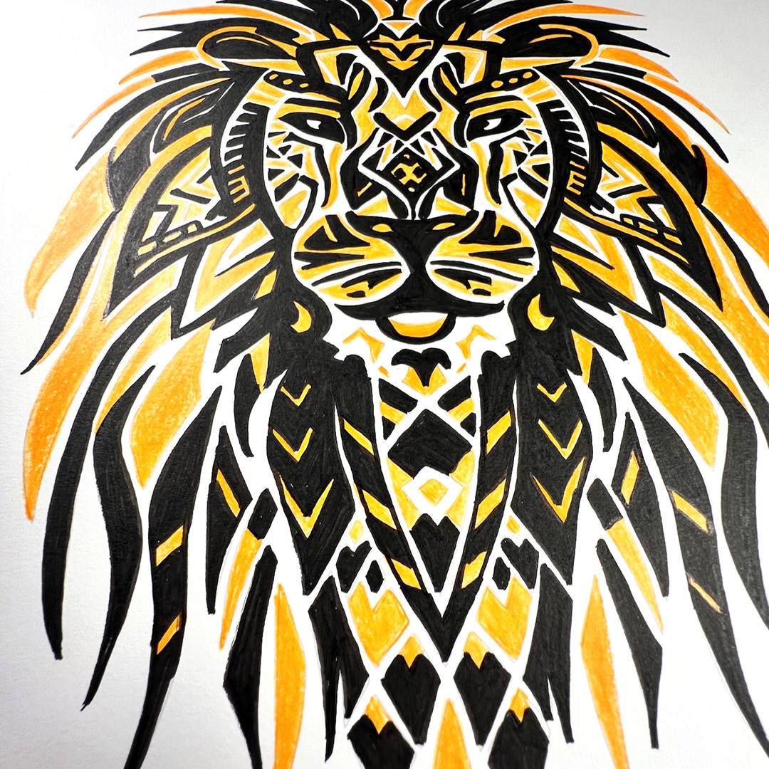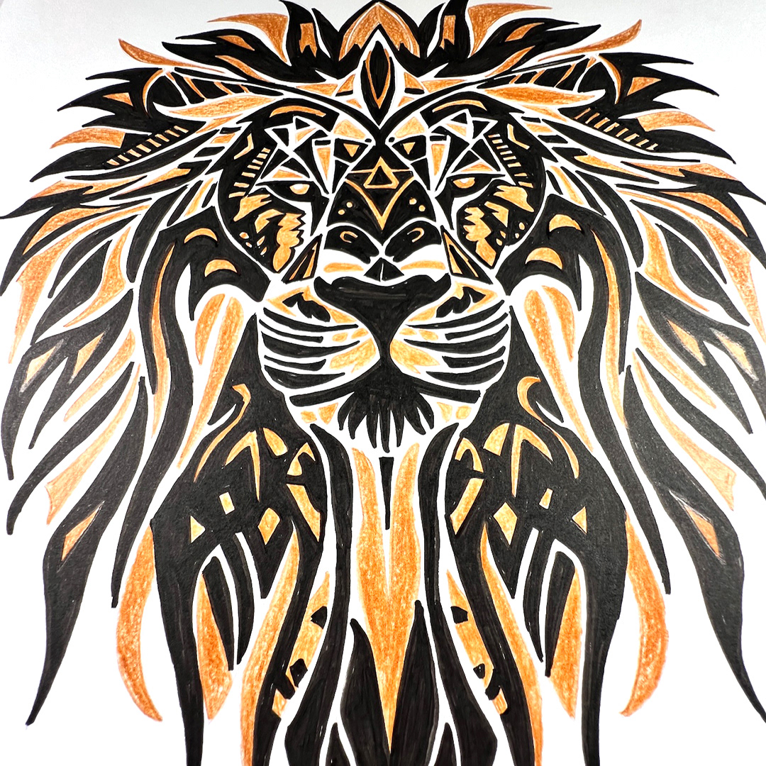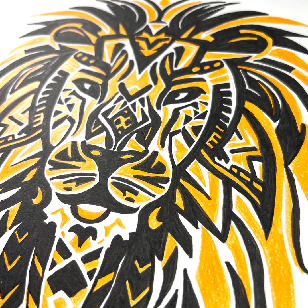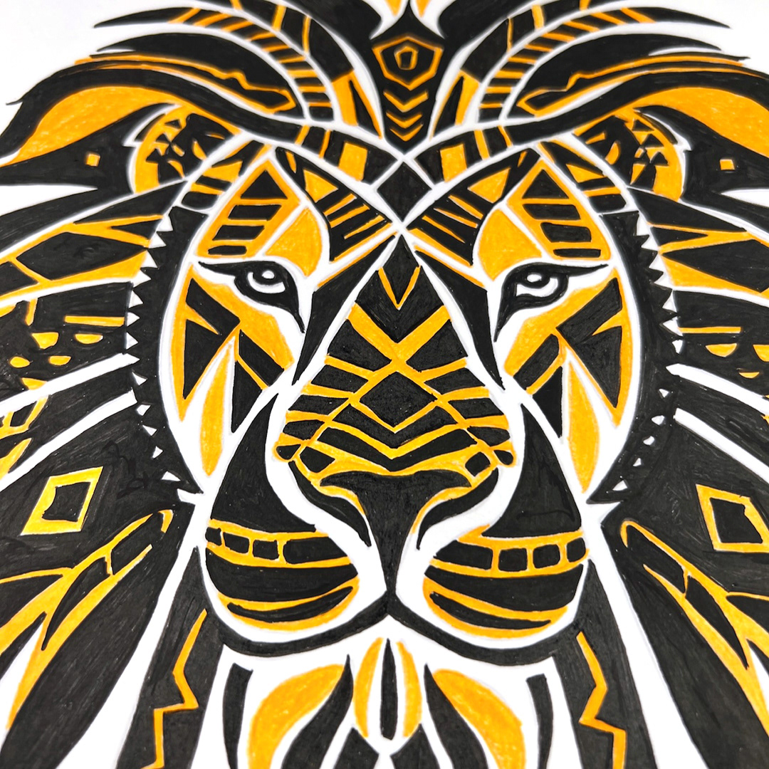Series: Spirit Animals Lions Media: Mixed Media on Paper Size: 14h x 11w inches Matted Size: 20h x 16w inches