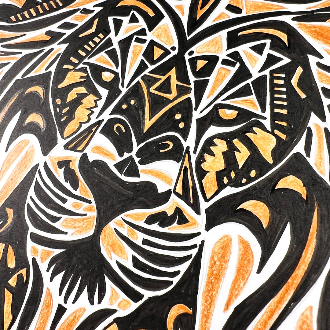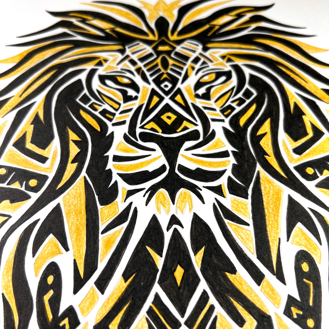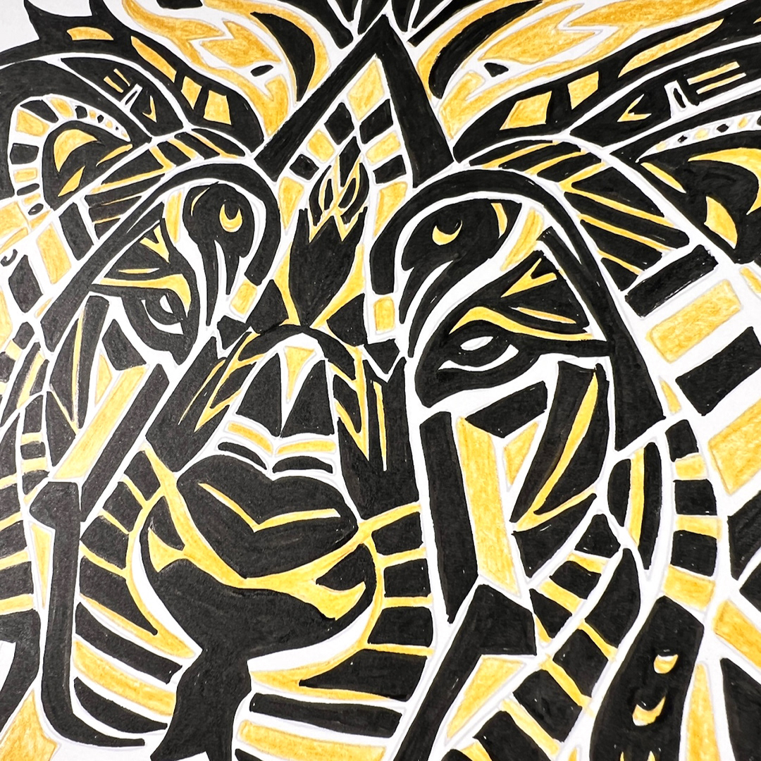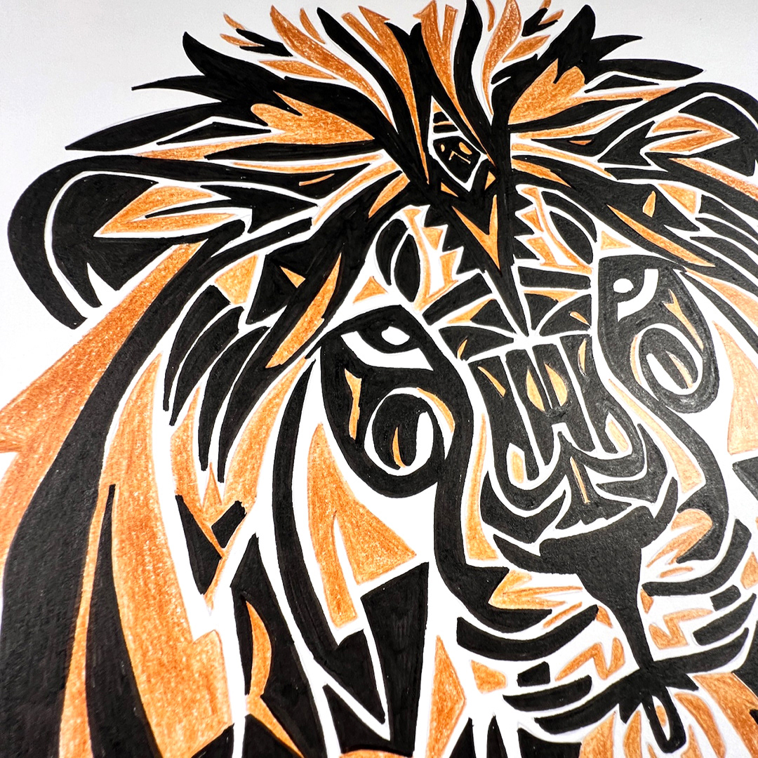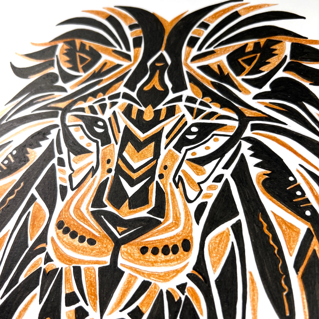Series: Spirit Animals Lions Media: Mixed Media on Paper Size: 14h x 11w inches Matted Size: 20h x 16w inches